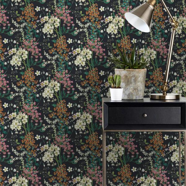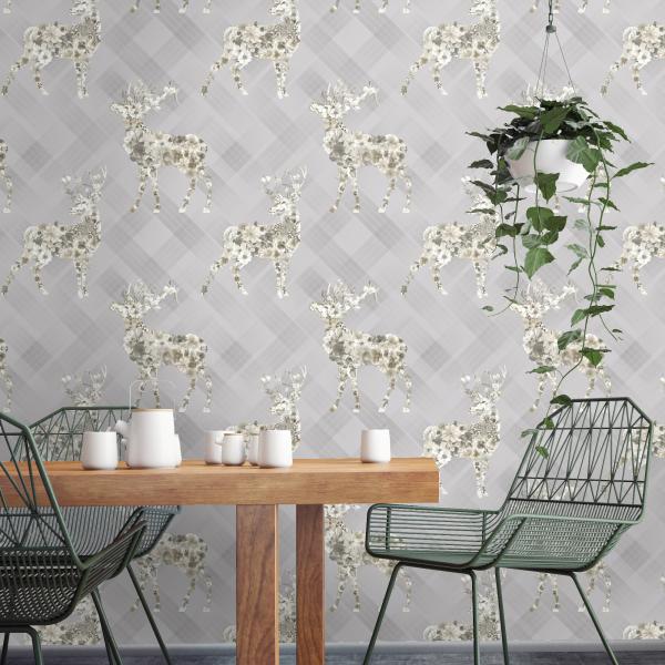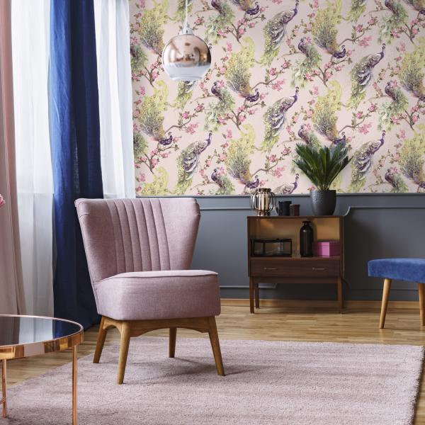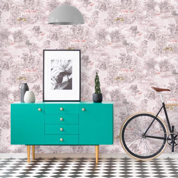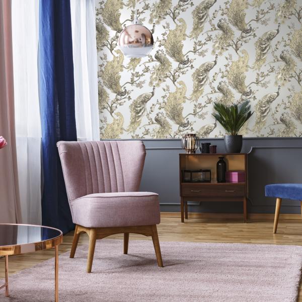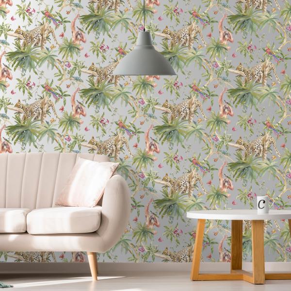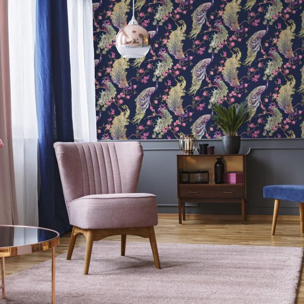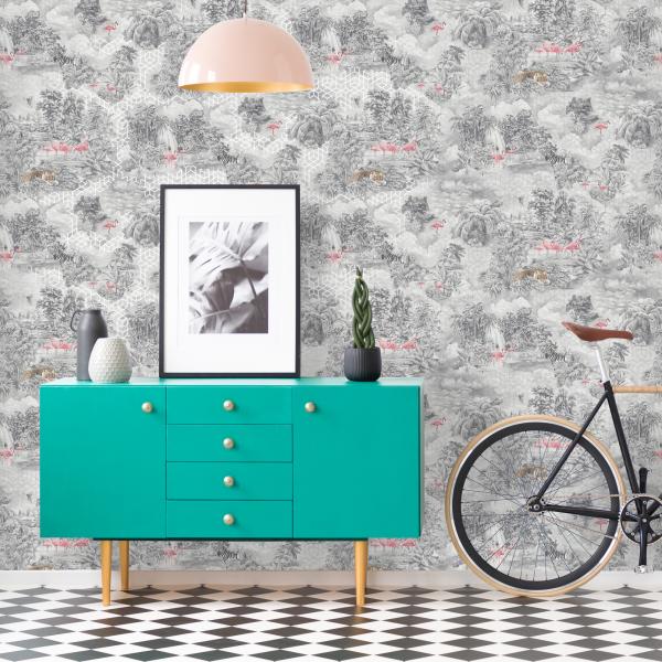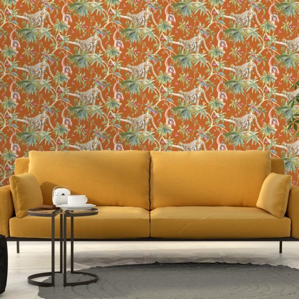 Härliga tapeter från våra engelska designers som gör ännu en kul kollektion med en mix av mönster och färger. Här är djungelmotiv med klängande apor, vackra påfåglar i all sin prakt, timida svanar i romantisk inramning, flamingos och tigrar som lurar i buskarna eller söta skogsdjur i träd. Många med en liten ”touch” av glitter, guld och silver. Ni hittar även coola geometriska mönster, en snygg ruta och ett helt oväntat mönster som t ex en blommig hjort. Helt enkelt ett kalejdoskop av tapeter. Färger i kraftiga toner som orange, midnattsblått, svart eller petrolblått varvat med grått och pasteller.