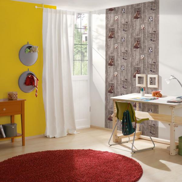 En ljuvlig kollektion med barntapeter för de minsta med allt som barn gillar. Här finns kattungar, gulliga valpar, gula grävskopor, röda brandbilar, dinosaurer, teddybjörnar och babyskor, prinsessor, hästar och smådjur i stallet eller gröna traktorer. Och mycket mer! Fina sidotapeter i antingen enfärgat eller småmönstrat att matcha till. De här tapeterna gör barnen glada.