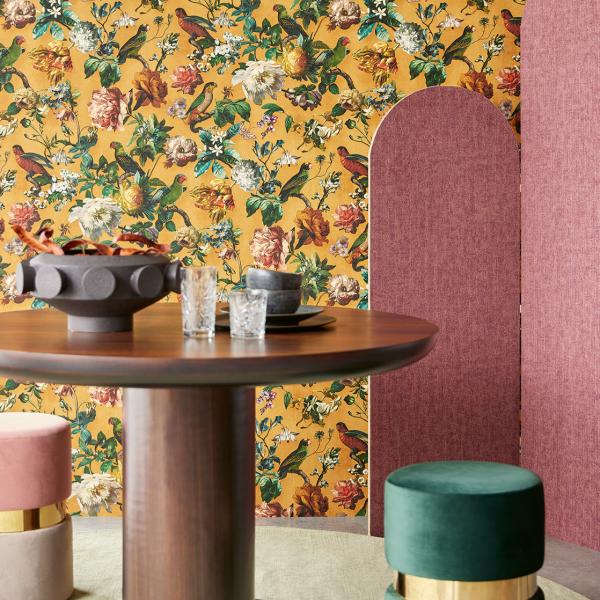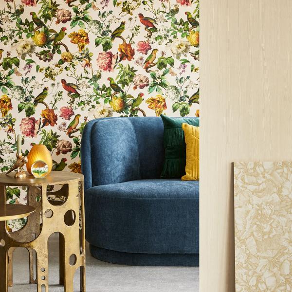 Museum är som en resa i tid och rum, där klassisk elegans möter modern maximalism. Ljuvliga mönster med blommor och fåglar i en färgprakt av sällan skådat slag. Det är detaljerat och rikt i både färg och design med snygg struktur som efterliknar linne och i flera fina bakgrundsfärger, som dramatiskt svart, ockragult, rosa, vitt och några olika blå och gröna toner. En stilren rand som går från mörkt till ljust eller en randig i sammet i fyra vackra färger. En unik kollektion, lite utöver det vanliga.
