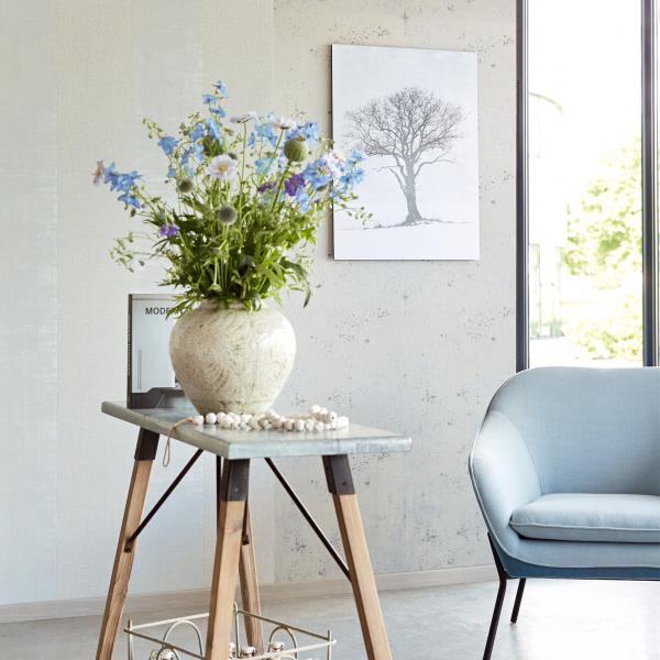 En läcker bok med industriell design och råa material i lyxig känsla. Mönster av polerad marmor, träfiber, grovt linne och naturell bambu blandat med bark från björk eller cypress, oxiderad metall och slitet läder. Färgerna går från grafiskt svart och vitt till himlens blågrå toner, kraftigt brun, subtilt blond, naturligt grönt, frostigt rosa till guld, silver och koppar samt havets lockande turkos toner. Fantastiska tryck i dessa vackra och lyxiga tapeter för den som gillar den industriella trenden.