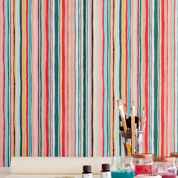 Ränder på längden och tvären, på höjden och bredden är innehållet i denna härligt färgglada kollektion. Förutom klassiska ränder, hittar man nya varianter i annorlunda design och dessutom mönster som har ränder som sitt mönster. Alltså, ränder som bildar rutor, ”handmålade” penseldrag eller t ex zigzag mönstrat. En mångfald av ränder som ny designidé, det är det + (pluset) står för. Färgerna är såväl klassiska i svart, vitt, grått och beige samt härligt färgstarka i pastelliga toner av grönt, blått, turkos, cerise och multifärgat. Här finns en rand för var och en.